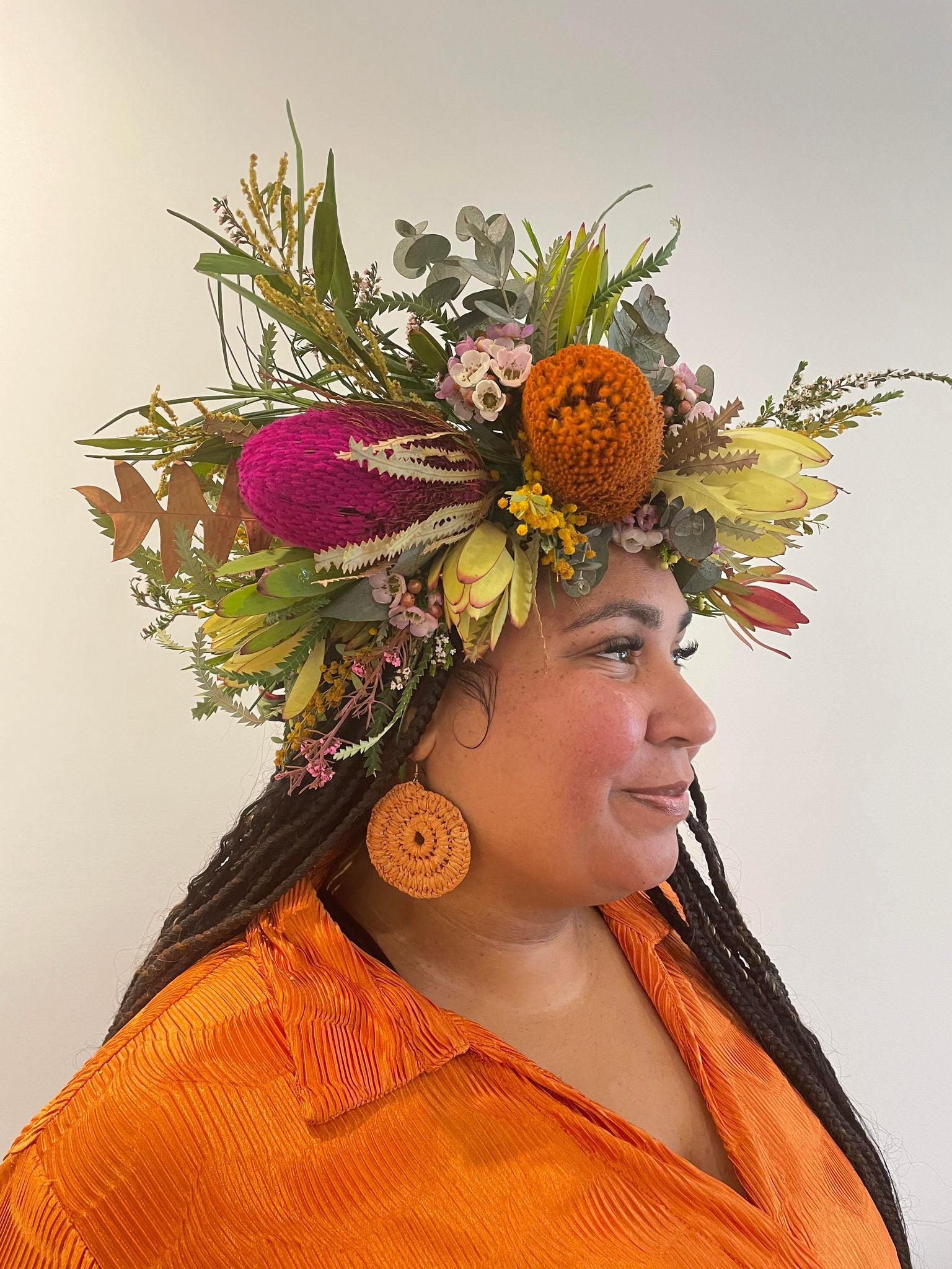 In this immersive workshop, you’ll learn how to create a natural crown base using foraged and sustainable materials, before weaving in native blooms and botanicals to form a one-of-a-kind piece. Guided by Nadine, Blak Botanics, this is a gentle, intentional process - where each stem tells a story and every crown reflects connection to land, culture, and creativity.