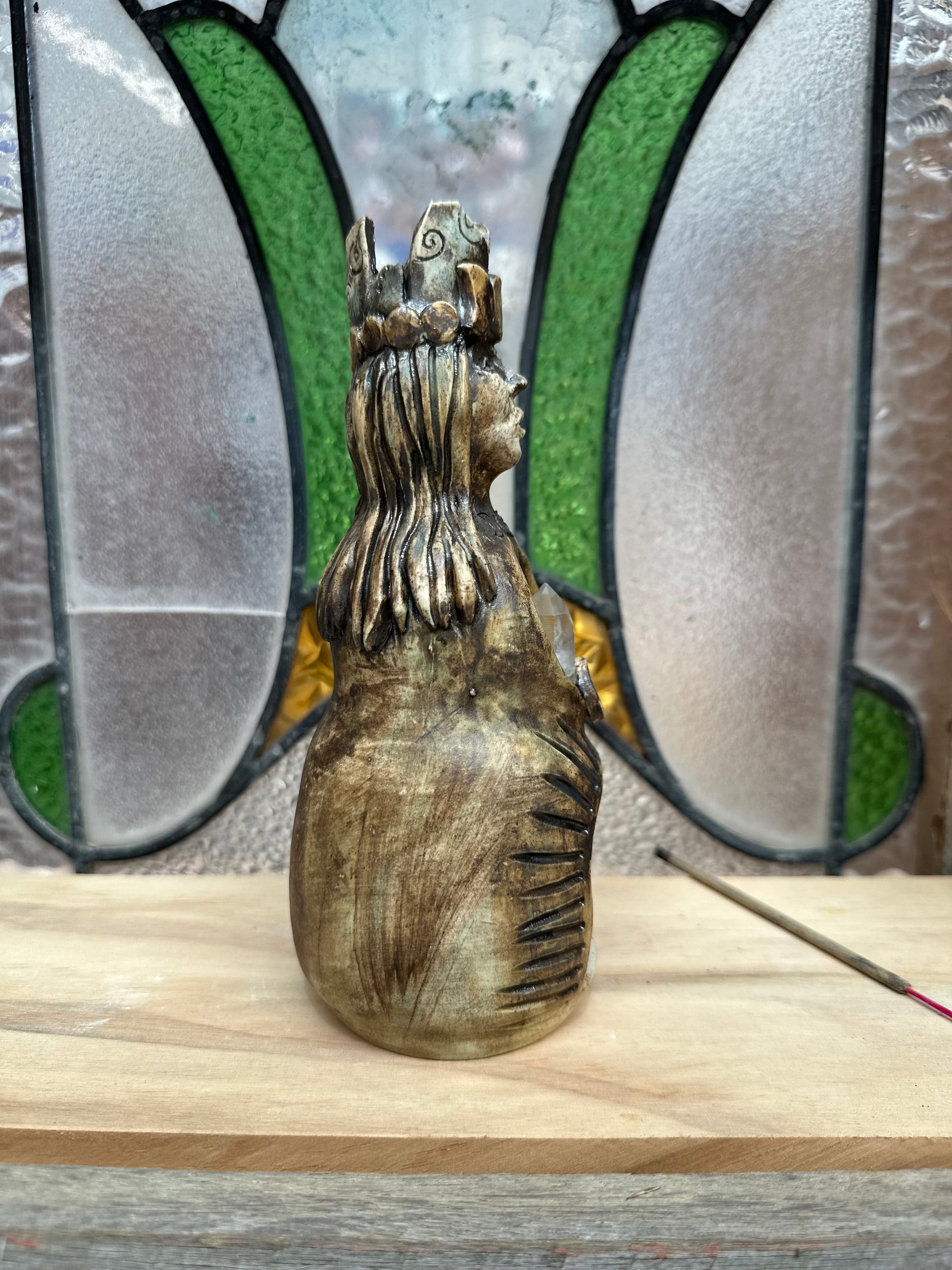 This goddess stands as a symbol of stillness and quiet strength - a keeper of cycles and sacred space. She reminds us that peace is born in presence, and that every phase of life, like the moon, carries its own light. Light Bearer No. 4 invites you to slow down, breathe, and reconnect with your inner rhythm - to honour both the waxing and waning of your own energy.