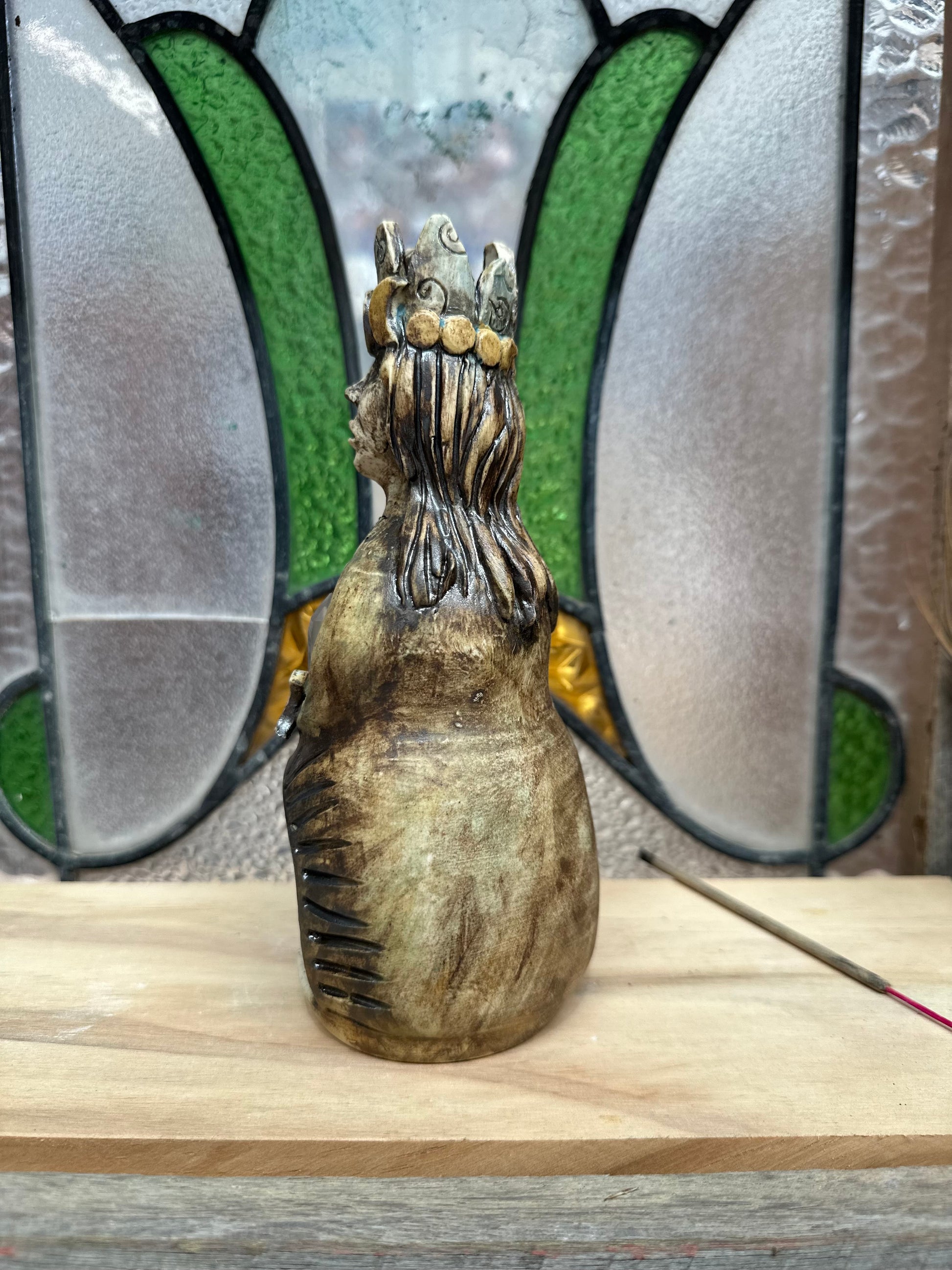 Stone Circle Carving - Around her form, the carved lines echo the pattern of a sacred stone circle - a space of gathering, ritual, and return. It anchors her as both guardian and guide of sacred ground.