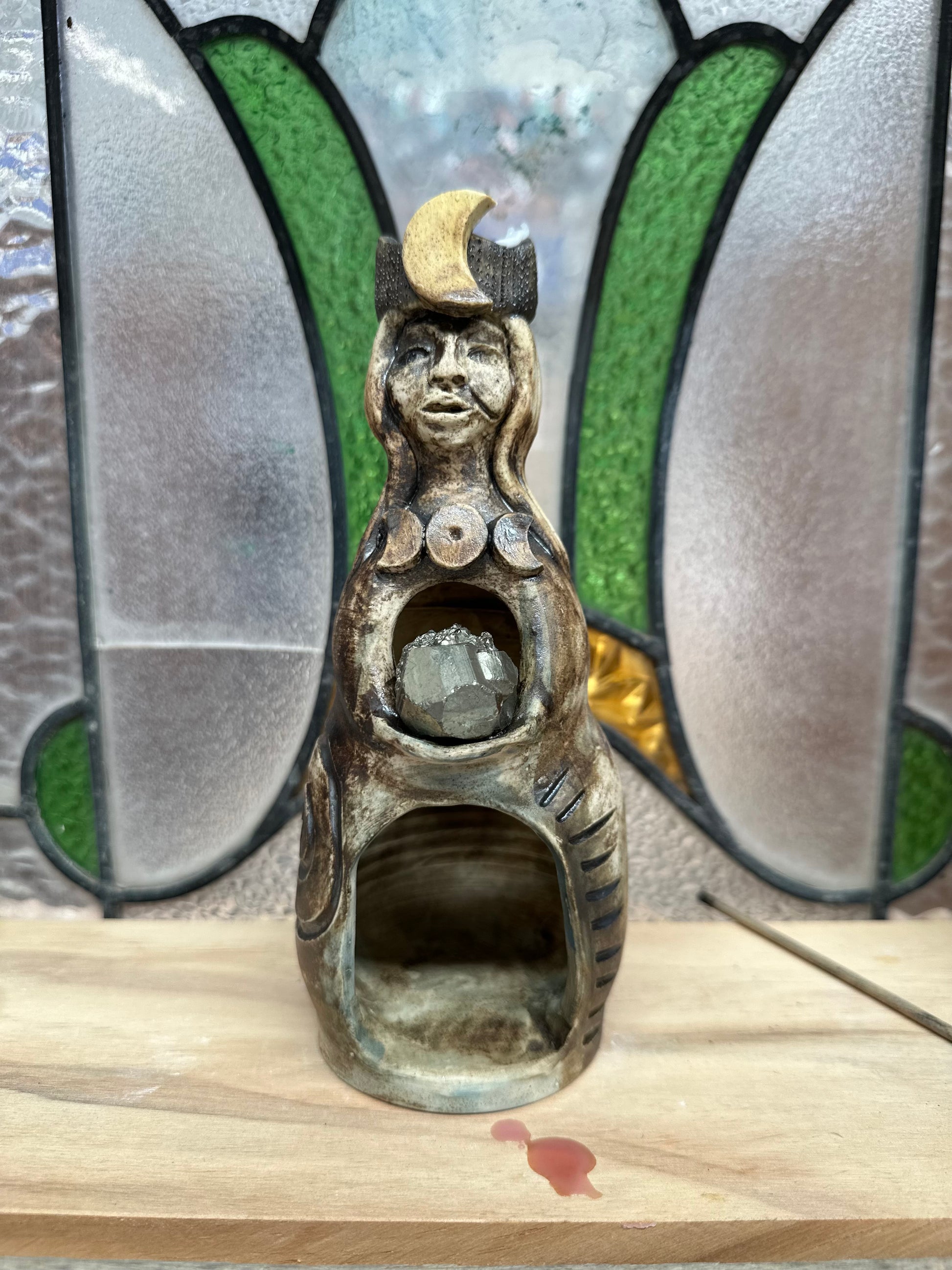 Each Light Bearer is a one-of-a-kind ceramic goddess, handmade with care to hold space for light, reflection, and ritual.