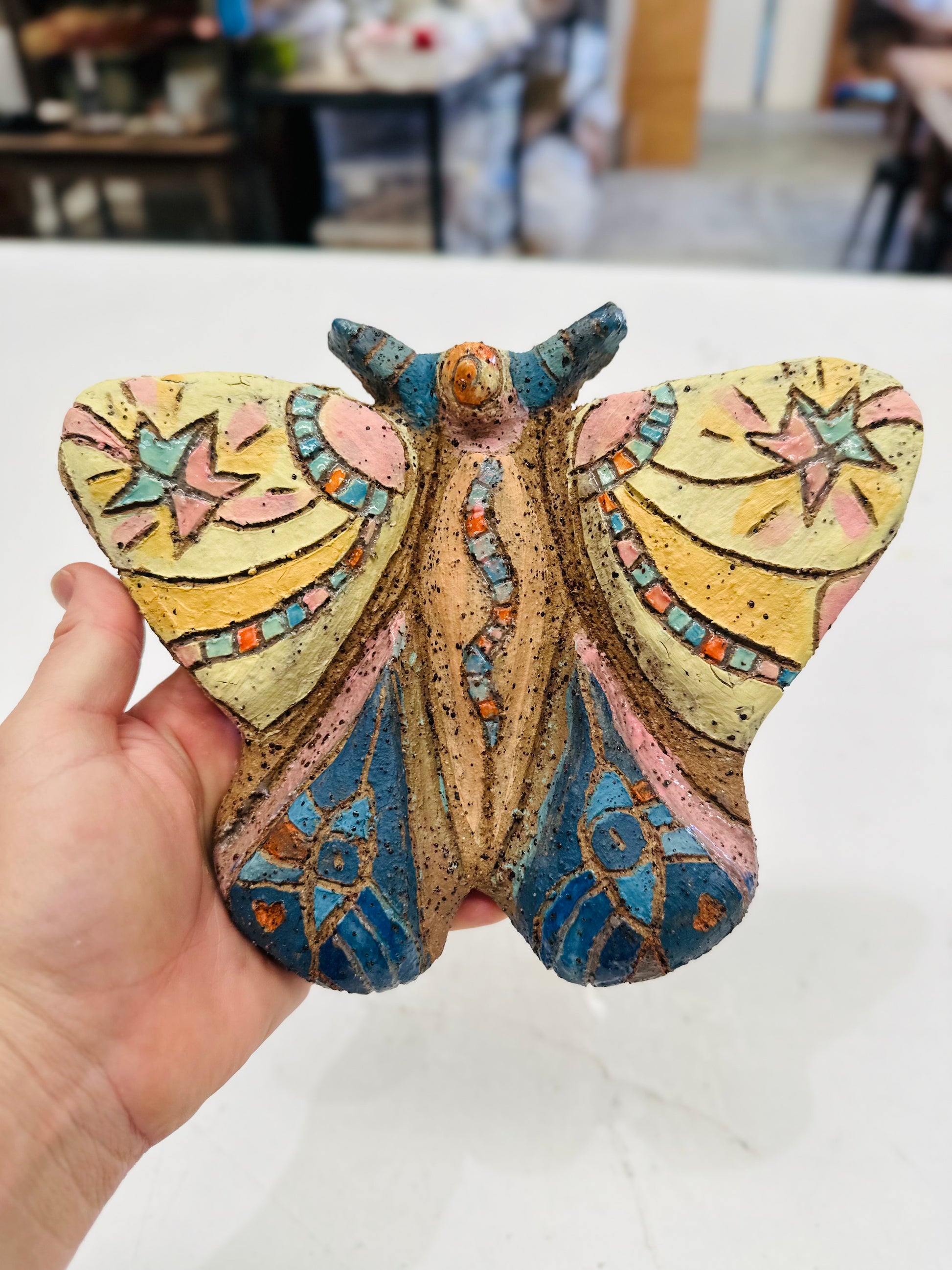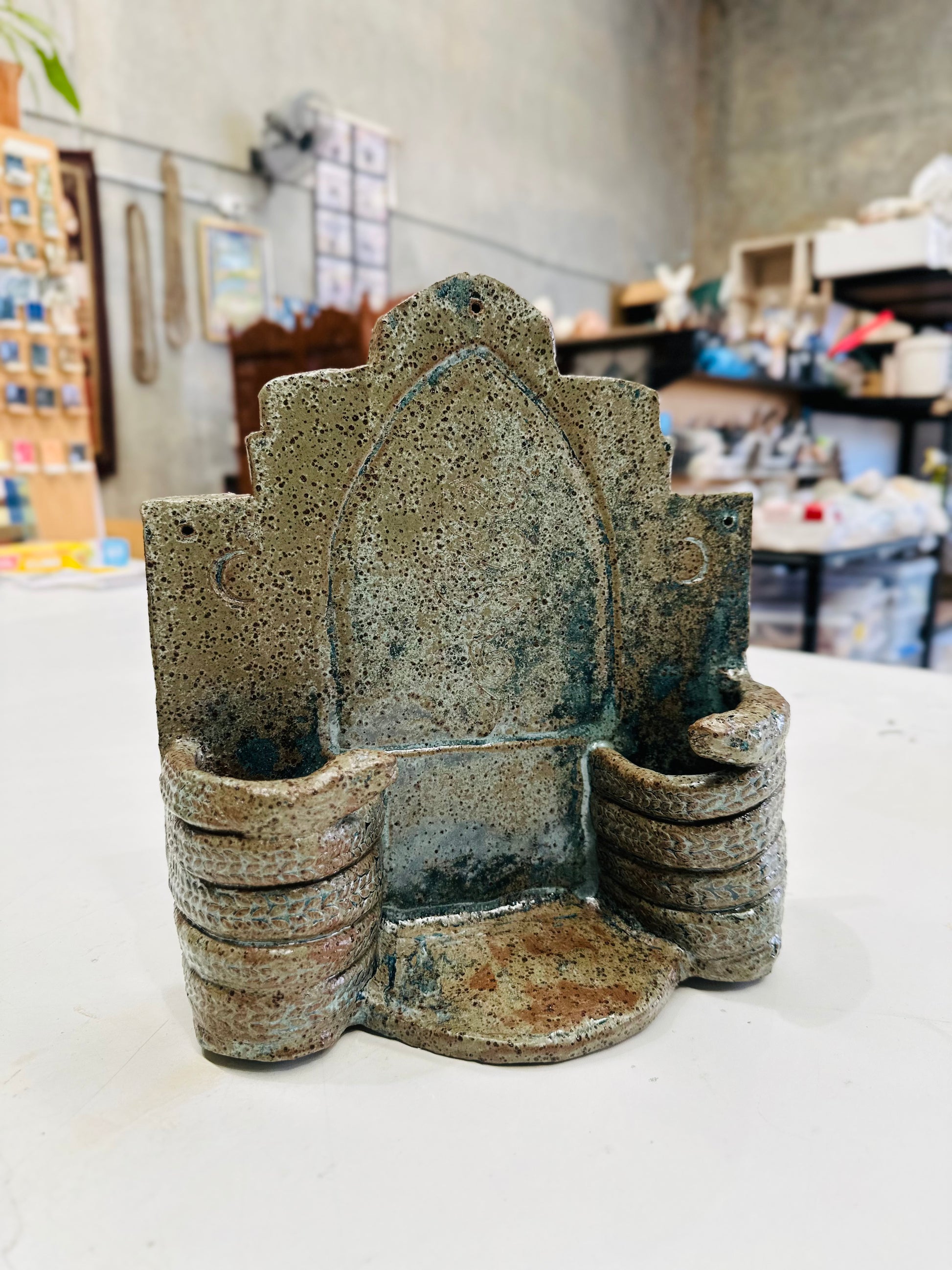 Your piece will be carefully dried, bisque fired, and then finished with our beautiful misty white glaze before its final firing. On the rare occasion breakages occur during firing, we will repair them to the best of her ability — and if a piece cannot be saved, you’ll be offered the chance to remake it or receive a full refund. Your finished altar will be ready for collection from the studio in 2–3 weeks.